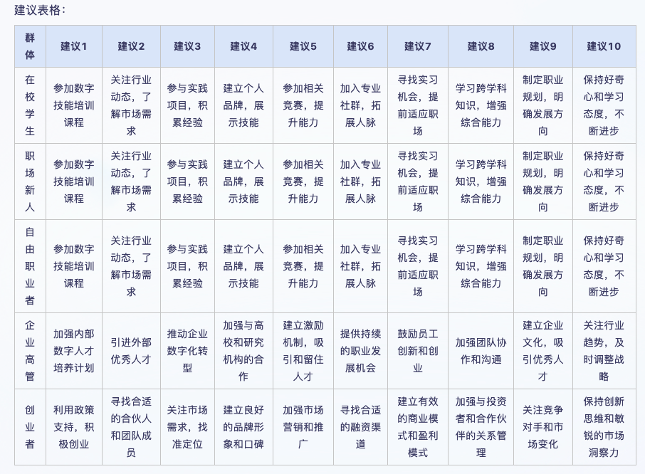 - 企业高管:积极响应政策,加大对数字人才的培养和引进力度。