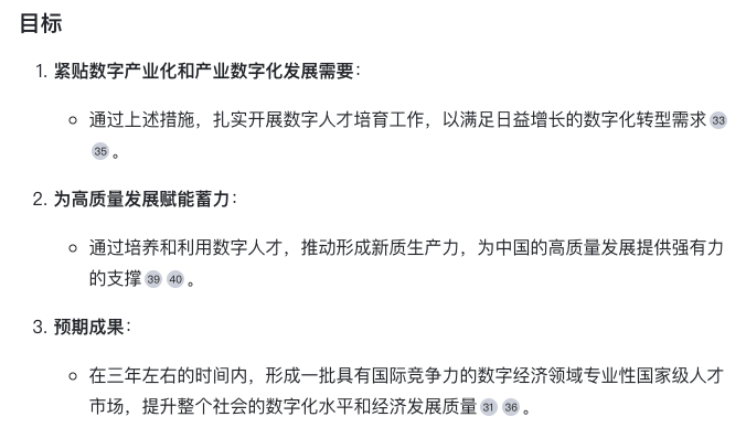 - 通过培养和利用数字人才,推动形成新质生产力,为中国的高质量发展提供强有力的支撑。