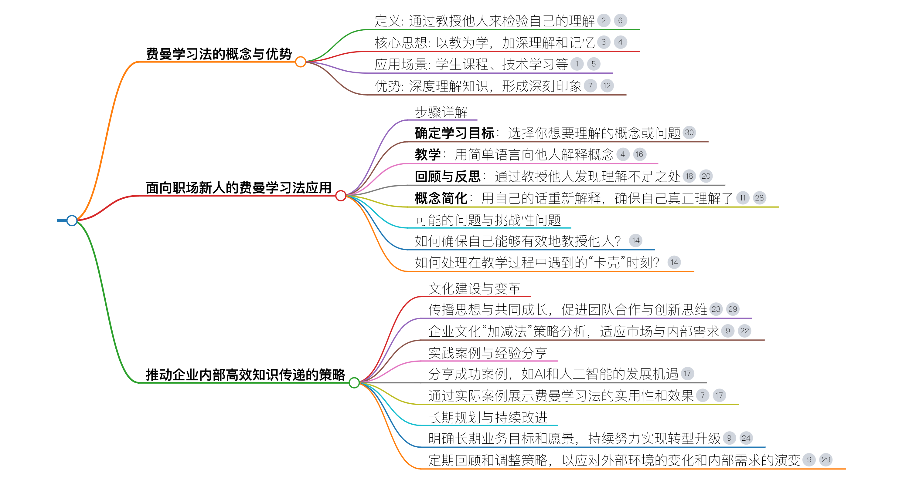 - 最后进行归纳简化,输出费曼学习法的思维导图大纲;